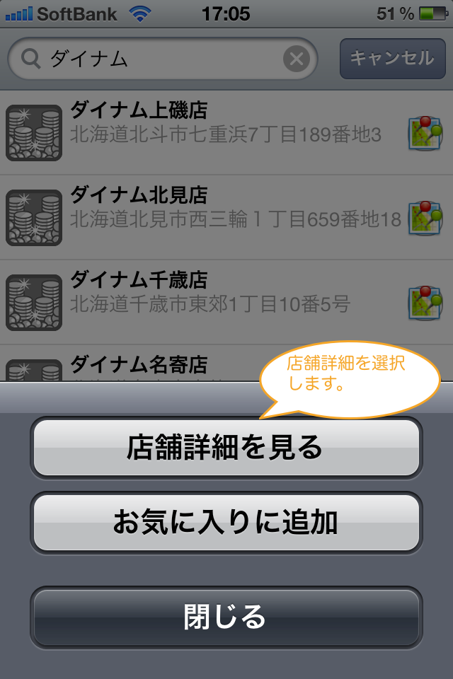 「店舗詳細を見る」を選択してください。